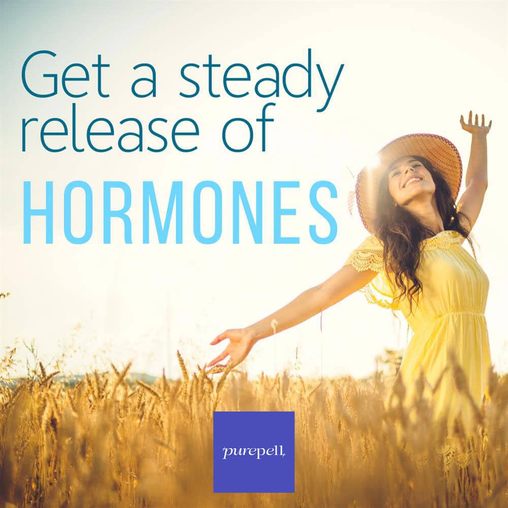 Hormone pellets, about the size of a grain of rice, are inserted under the skin where they release a continuous supply of hormones using only what’s needed by the body.